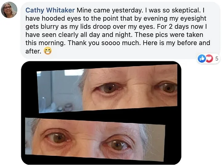 The perfect solution to a common problem people face every day- hooded, droopy, and tired eyes. Stop hiding behind sunglasses and embrace your natural beauty with one easy application!